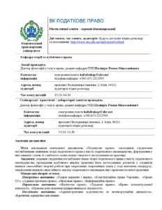 Силабус Податкове право (на 3 курс)